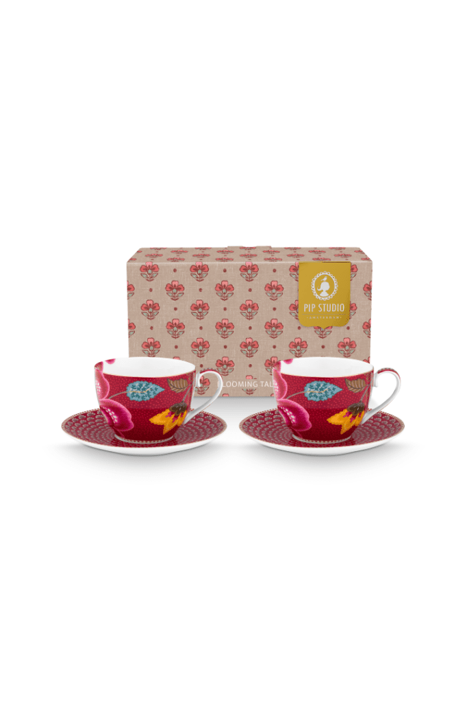 Set/2 Cups and Saucers Blooming Tales Fantasy Dark Red /1